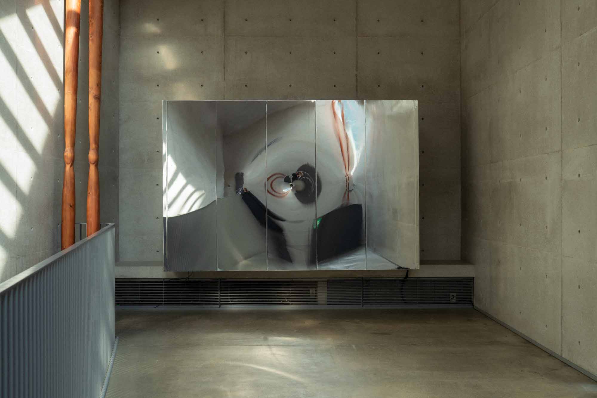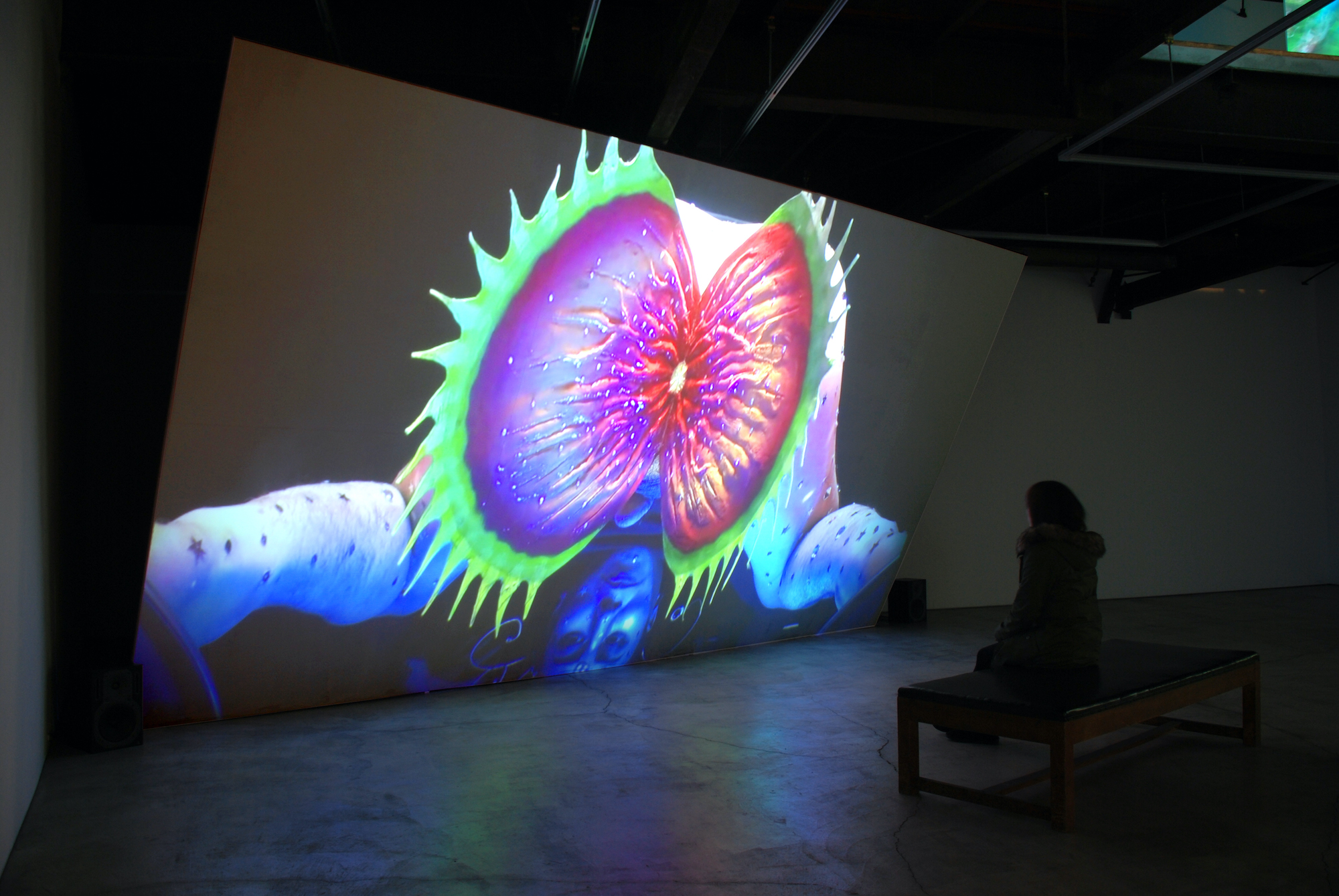 本作は2台の大型ディスプレイ、スピーカー、PCから構成される4K 2chのヴィジュアル・オーディオ・インスタレーションです。