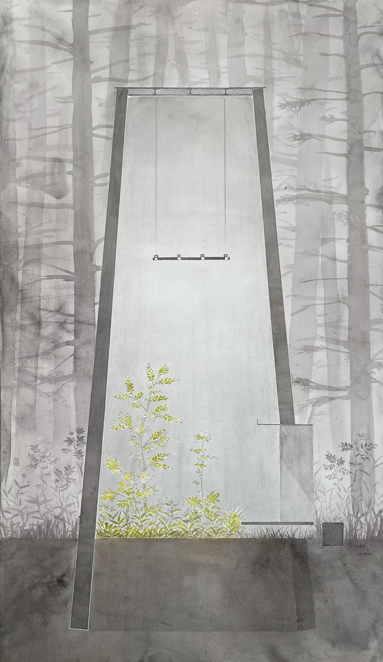 今回の芸術祭のために計画された”Farmed Nature”は芸術祭終了後も引き続き進行予定である。 清春芸術村の裏山にある、ある土地を土壌ごと建築物で囲い、植物工場さながらにその土地ごと半永久的にファーミングするプロジェクトだ。 建築は内部の土壌を残すための新しい工法を模索し、既成のコンクリート製電柱を束ねた列柱の塔を提案している。着工は来年予定。